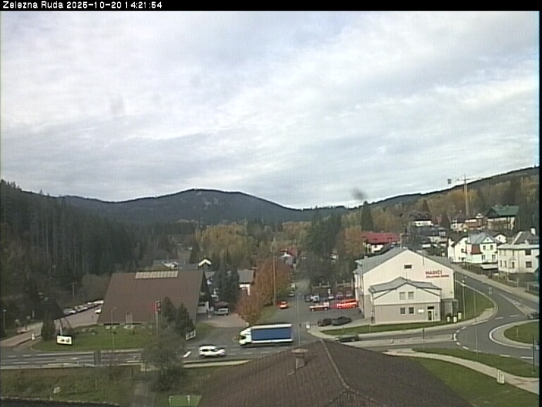 Page contentWebCamsŽelezná RudaBig Image20.10.2025 11:34:08Select time: Archive: Today 1 day 2 days Week Month 100 days Year Železná Ruda - PancířBig Image20.10.2025 3:53:16Temperature: 10,3°CSelect time: Archive: Today 1 day 2 days Week Month 100 days Year Špičák vrcholBig Image20.10.2025 11:18Temperature: 8,7°CVideoŽelezná Ruda - údolí říčky ŘeznáPod sjezdovkami Belveder, pohled k Železné Rudě a na Samoty.More detailsHojsova Stráž - z Chaty ŠumavaOther Webcameras Hojsova Stráž Hill Pancíř - Hofmanky (Hotel Horizont - view of hill Špičák and hill Velký Javor - Big Maple) Refresh page
